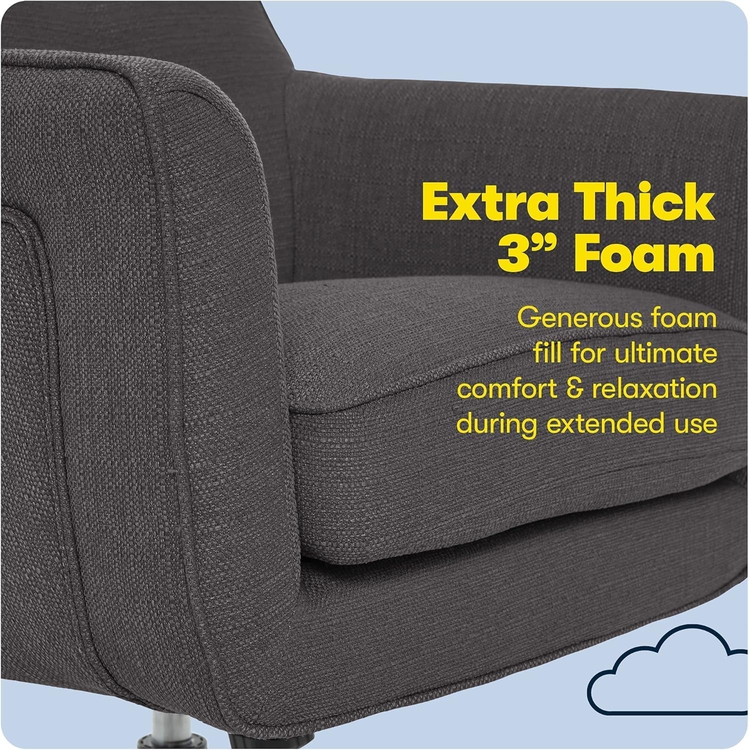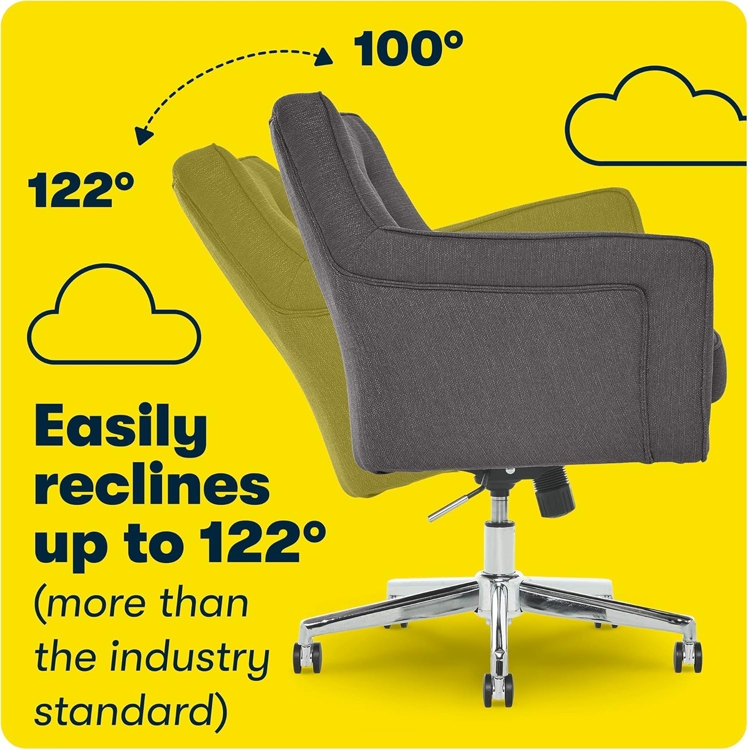 The better you sit, the better you'll feel. Whether for work, play, or any other activity that has you sitting in our chairs, we believe comfort is everything. We know it's a big responsibility and take it seriously, just as we do with our mattresses. With over 15 years of making chairs and innovating with designs, materials, and technology, Serta knows what it takes to give you a comfortable sit. With its chic, mid-century modern design, the Ashland is a trendy desk chair that adds a touch of style and inspiration to any workspace, whether you're working from home or clocking in hours at the office. It reimagines retro and vintage accent chairs with its boxy mid-back silhouette, low-slung arms, and sophisticated button-tufted details for a nostalgic yet modern look. The Ashland is not only stylish with its designer aesthetic but also practical as a comfy vanity chair or teen desk chair for the bedroom or study room. Upholstered in durable twill woven fabric or bonded leather in 11 colors, you can complement your home decor with a classic and timeless appeal or a splash of color for a cute and playful touch. This decorative office chair delivers surprising comfort. The fixed, padded armrests and memory foam seat cushion let you sit comfortably with adequate ergonomic arm position, while the mid-back is well-cushioned and provides limited support. The sturdy stainless steel base supports up to 275 lbs and rolls on 360º dual castor wheels, ideal for rugs and carpet floors. An adjustable seat-side lever lets you match your chair height to your size and work setting, while the low-profile arms easily slide under most desks for easy storage. Refresh your workstation and choose the Serta Ashland office chair for a fashionable and functional deskmate that'll transform any dull room into a fabulous workspace.